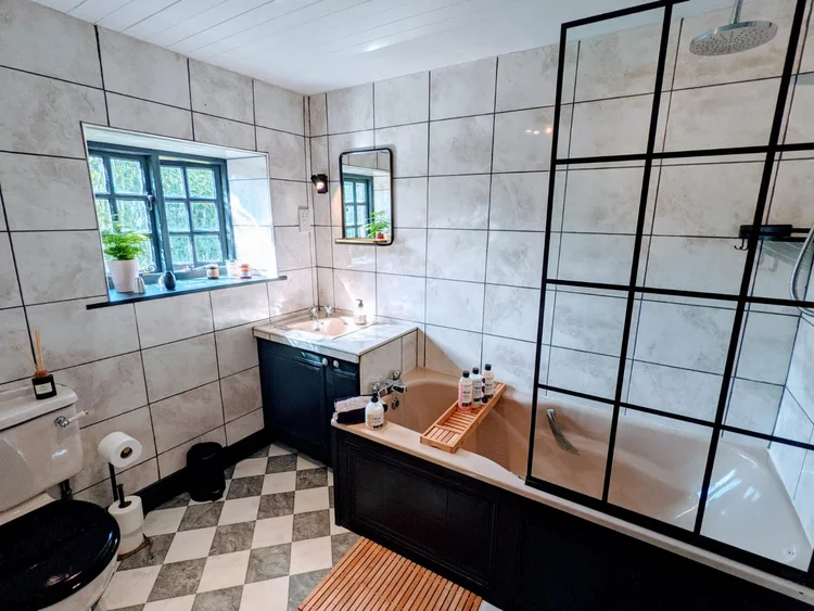 Then make your way up the traditional cottage stairs, taking a couple of big steps to the first floor where you’ll find 3 calming bedrooms that sleeps 5, along with the bathroom with an over-bath shower.