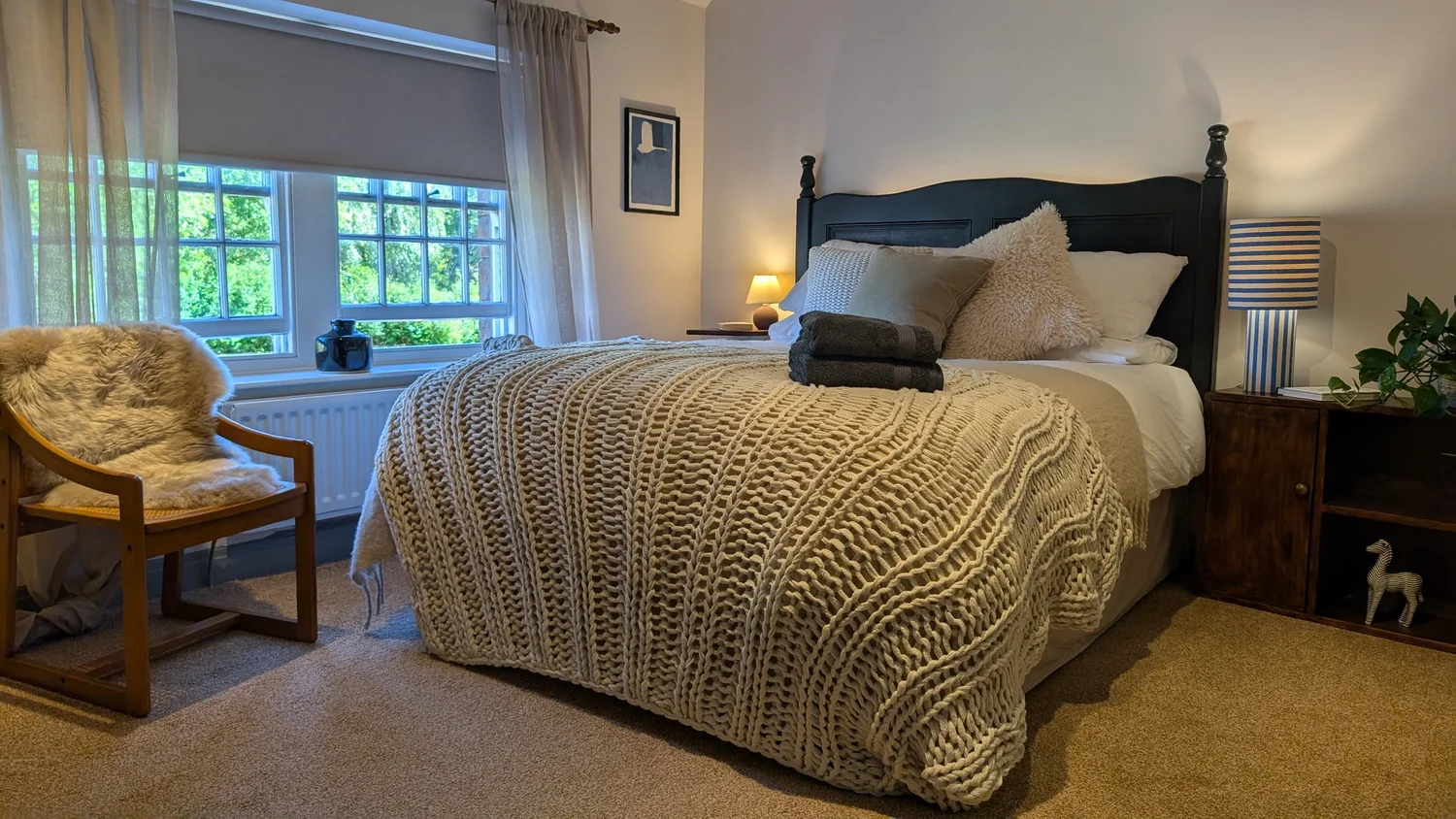 Inside you’ll find a light filled kitchen with a big dining table, a spacious garden, and a sunny conservatory off the lounge with two sofas and an open fire. Upstairs: three comfy bedrooms, soft linens, and a family bathroom with eco friendly toiletries.